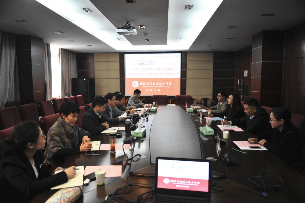 11月2日,十堰市郧阳区人民政府副区长望甜携郧阳区教育局副局长刘强、郧阳科技学校校长常红卫来我校就进一步推进对口帮扶工作进行交流洽谈。校长陈方晔、副校长王孝斌及相关处室、二级学院负责人参加会议。