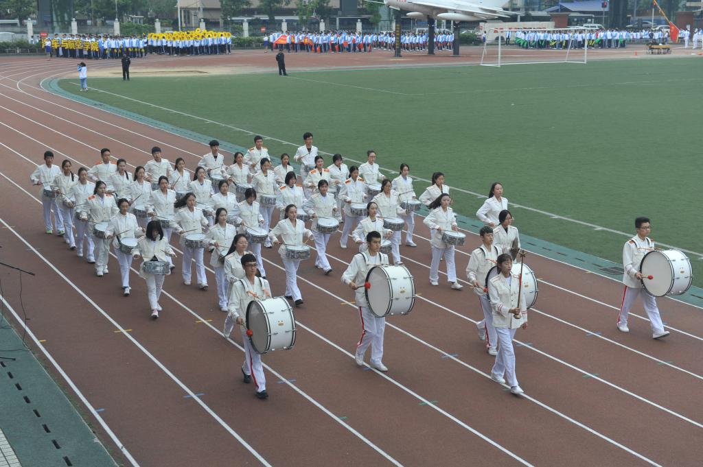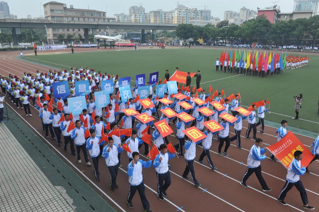 8点30分,伴随着激昂的运动员进行曲,运动员入场式正式开始。在校旗的引导下,彩旗队、鲜花队、管乐队、军鼓队、各二级学院代表队、教工方队及交通联队身着整齐的服装,喊着嘹亮的口号,迈着整齐的步伐,精神抖擞、英姿飒爽地依次通过主席台,接受学校领导的检阅,他们的风采赢得了观众们的阵阵掌声和喝彩。