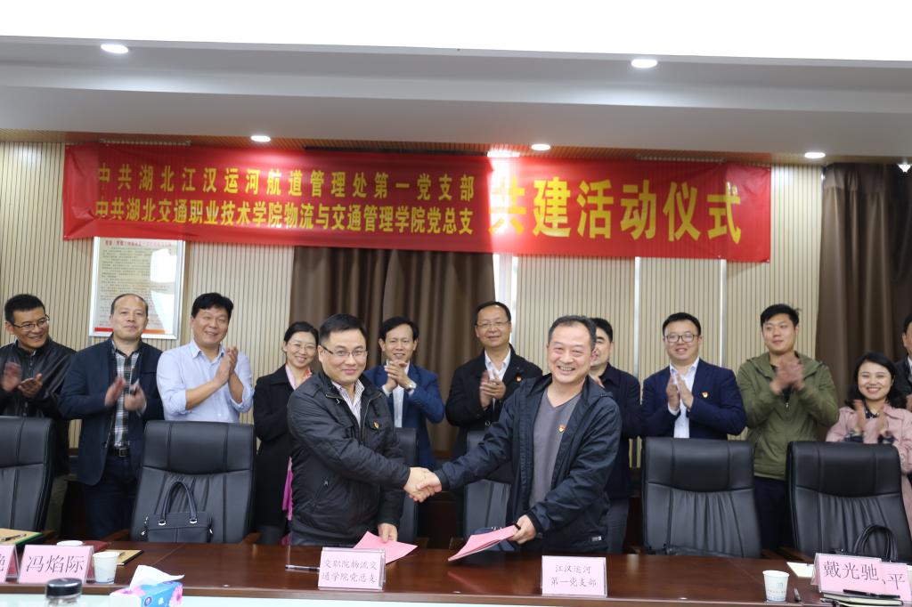 活动中,双方参观了省江汉运河航道管理处第一支部将支部建在船上的水上党建文化阵地,学习了相关党建资料和支部活动开展情况,举办了结对共建签订仪式。在签订仪式上,省江汉运河航道管理处第一支部书记彭兴无介绍了党建工作基本情况,我校物交院教工党支部书记万雯介绍了“四抓四提升 学做融通”的红旗党支部创建工作法。随后双方签订了共建协议,全体党员共同学习了协议内容,明确了共建双方的任务清单。