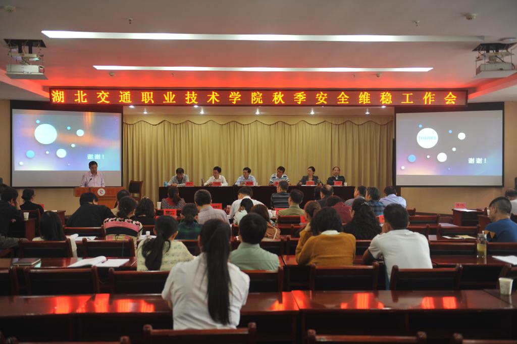 9月30日上午,学校召开2017年秋季安全维稳工作会,传达上级有关文件和会议精神,对学校安全稳定工作进行安排部署。全体在家校领导,各部门负责人,副科以上干部及全体辅导员、班主任参加会议。