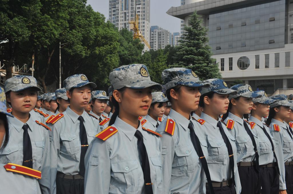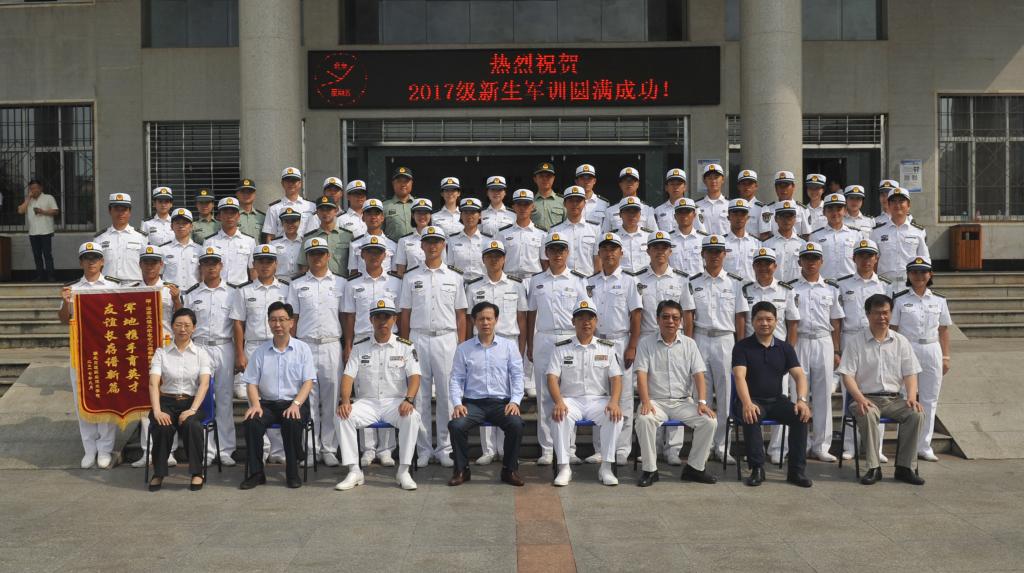 闭营式后,在家校领导与承训部队首长和教官在学校大楼前合影留念。(摄影/张鹏 高亚 吕义猛 张驰 饶蝶)