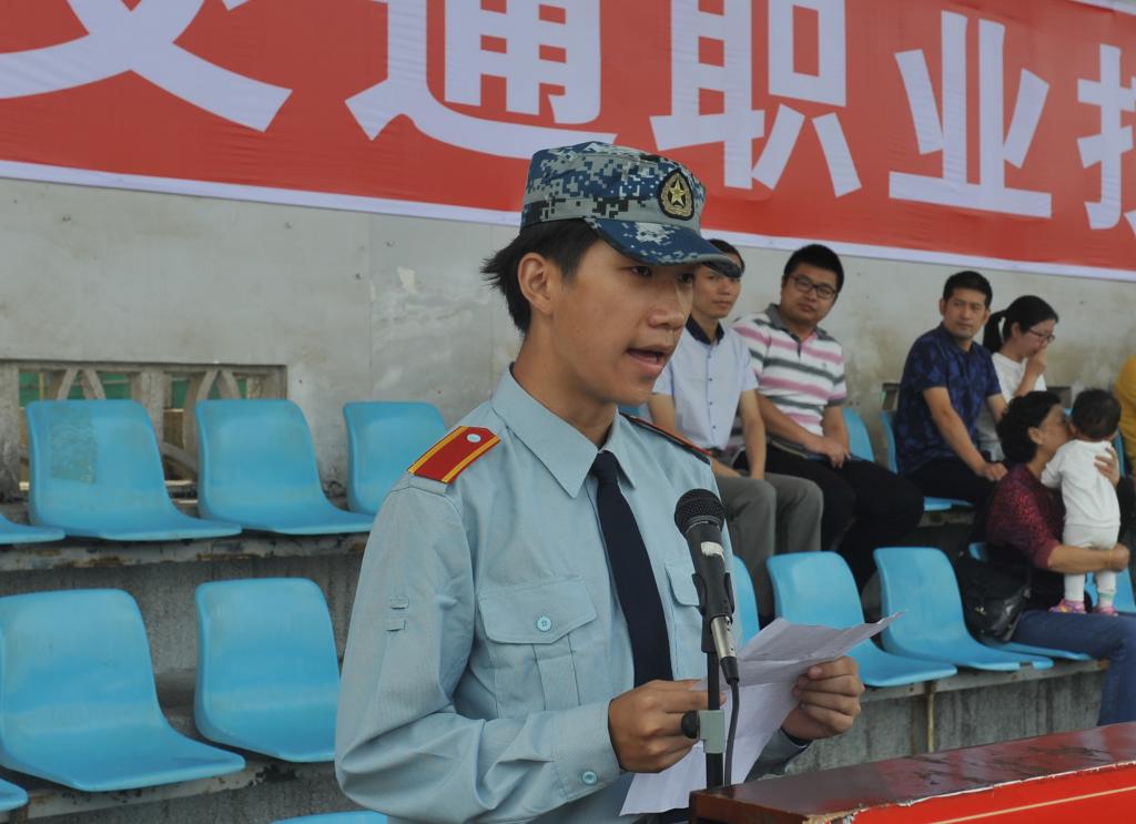 交通信息学院车子航同学作为优秀学员代表发言,他总结军训带给他的成长与磨练,并表达了自己对于未来大学生活的期待和憧憬。