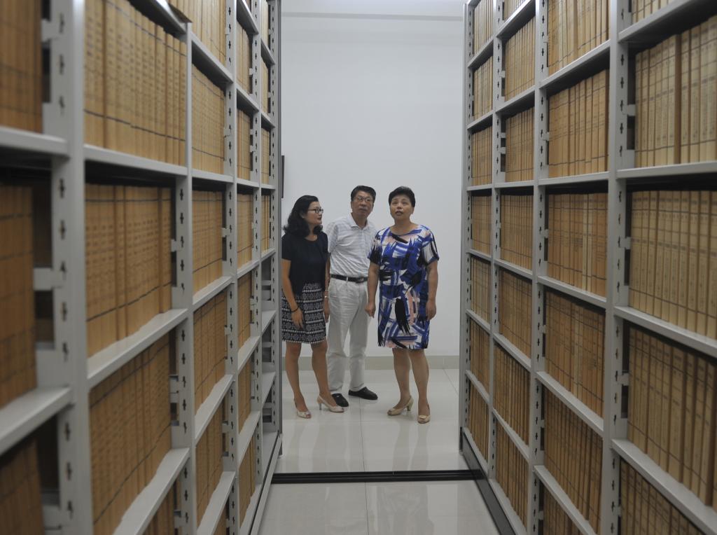 周幼芬一行首先查看了我校档案办公、阅览环境,然后进入档案库房,实地抽查了我校文书、财会、科研、基建、教学、印章等档案归档、管理情况。周幼芬对学校档案基础工作等给予了充分肯定,同时针对部分不足的地方提出了针对性的意见和建议。