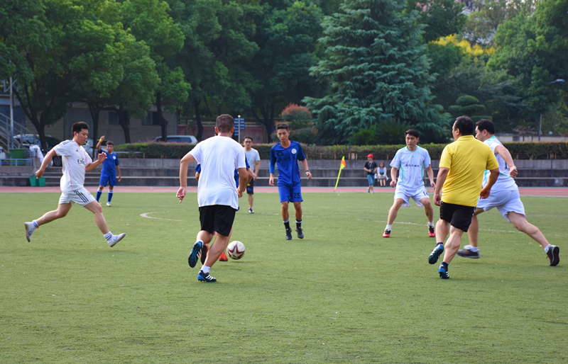 9月8月下午4点30分,随着一声长哨鸣起,一场别开生面的足球赛在足球场激烈地展开了。你争我抢、左右突破、长传、抢断、射门,在双方队员激烈的角逐下,各种精彩镜头纷纷呈现。上半场,教师队稳扎稳打,不急于求成,在稳固后防的前提下,慢慢依靠技术以及经验把战线逐渐推向前场。学生队急于冲锋,上场就全力拼搏,以3:2的成绩领先教工队。下半场,教师队展开了激烈反攻,牢牢掌握主动权,使学生队门前多次面临险情。最终,教师队以4:3的成绩战胜学生队。