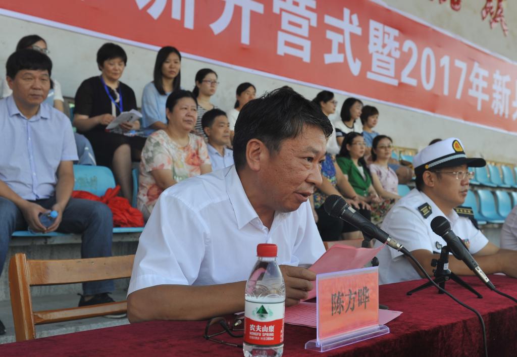 在海军工程大学研究生管理大队迟华伟的宣布下,2017年新生军训正式开营。