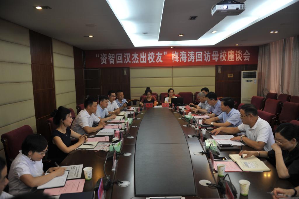 殷殷母校情,拳拳学子心。7月4日,我校87级校友,武汉首批资智回汉杰出校友、湖北大道物流集团总裁梅海涛率公司高管一行9人回到母校座谈,并受聘为我校大学生“创业导师”。校领导李全、齐建模、李红艳、王树荣等在家校领导出席,各相关职能处室、物流与交通管理学院负责人参加座谈会。座谈会由党委副书记、副校长李全主持。