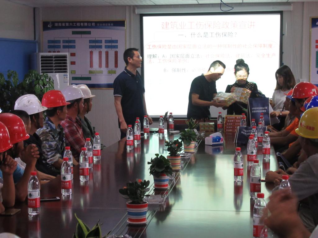 6月29日下午,由武汉市城建委联合市人社局组成的送清凉慰问组到我校新校区三组团3标段项目施工现场开展“送清凉、送教育、送安全”活动,围绕“建筑业工伤保险法律法规”等问题分别从保险维权、安全操作等方面为建筑工人进行教育培训,还为工友们带来“送清凉大礼包”,江夏区建管站相关负责人陪同慰问。
