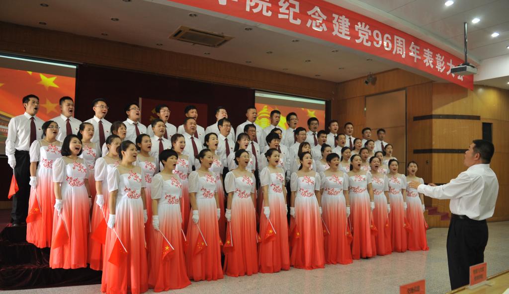 大会开始前,由校领导和教职工代表组成的合唱团深情演绎经典红色歌曲《红旗颂》、《今天是你的生日》,以激昂而深厚的情怀,讴歌建党96周年来的辉煌历程,颂扬伟大祖国的美好河山和繁荣昌盛,抒发对党无限的崇敬与忠诚。