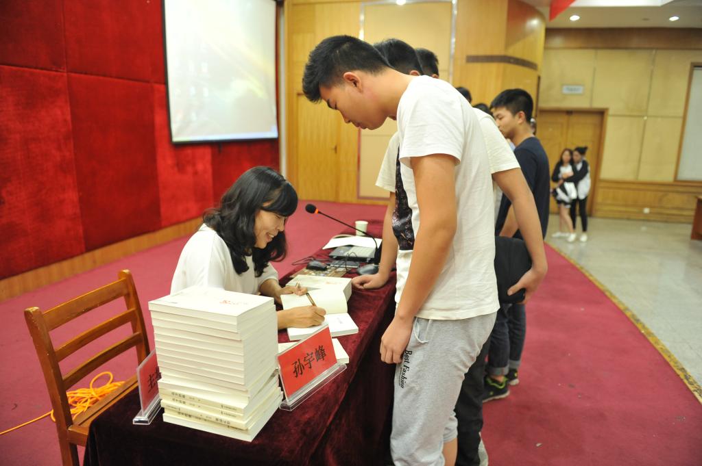 孙宇峰,湖北省公路行业资深宣传人员,青年作家,先后在《新华社每日电讯》、《工人日报》、《中国公路》等报刊杂志发表多篇作品,并著有散文集《远方的路》。省交通运输厅何光中厅长为她的散文集亲笔题序。报告会上,孙宇峰分享了自己的读书经历,并鼓励大家多读书,多写文章,她将写文章比喻成炒菜,只有不断积累,不同尝试,才能在写出的文章里添加更多的味道。希望青年学子们珍惜校园读书机会,多读书,读好书,为学子们推荐了《平凡的世界》、《红楼梦》、《麦田的守望者》等书籍。在随后的互动环节,孙宇峰热情积极回答了同学们的提问,并现场赠送了自己的签名书籍《远方的路》。