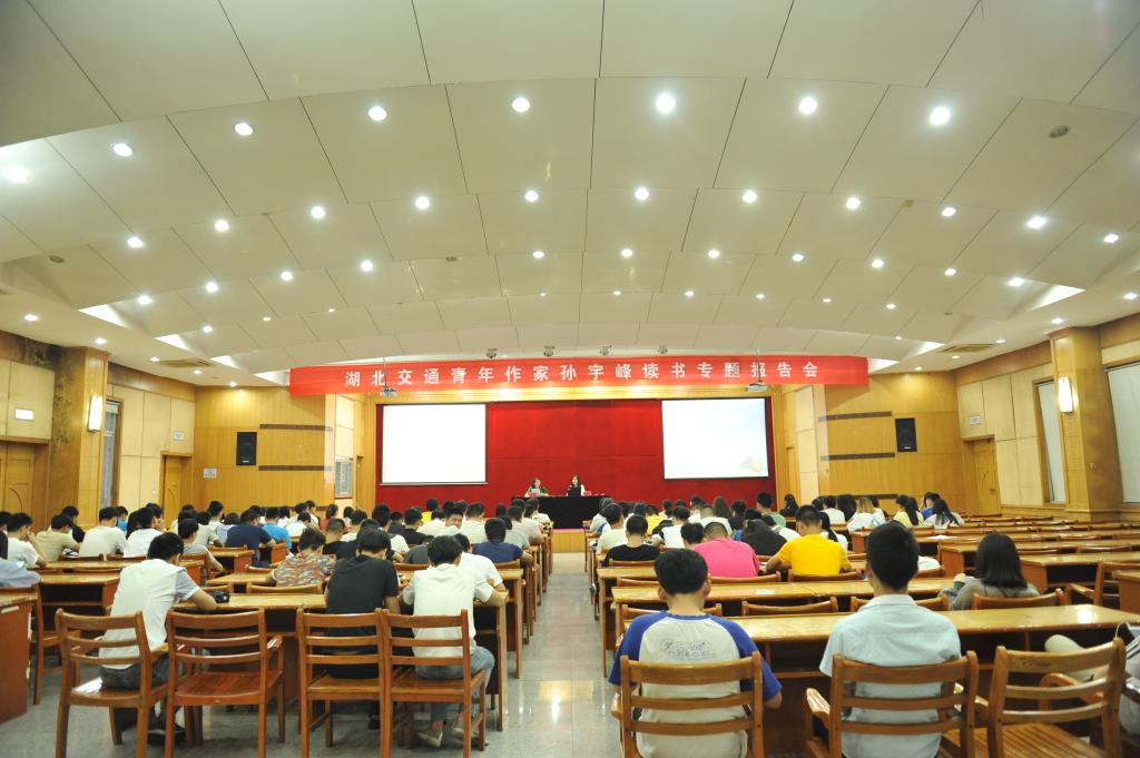 人生因读书而精彩,命运因写字而改变。6月15日,湖北交通系统著名青年作家孙宇峰受邀来我校作了一场生动别致的读书报告。此次读书报告会由校图书馆、党委办公室、学工处联合开展,近200名师生聆听了报告。