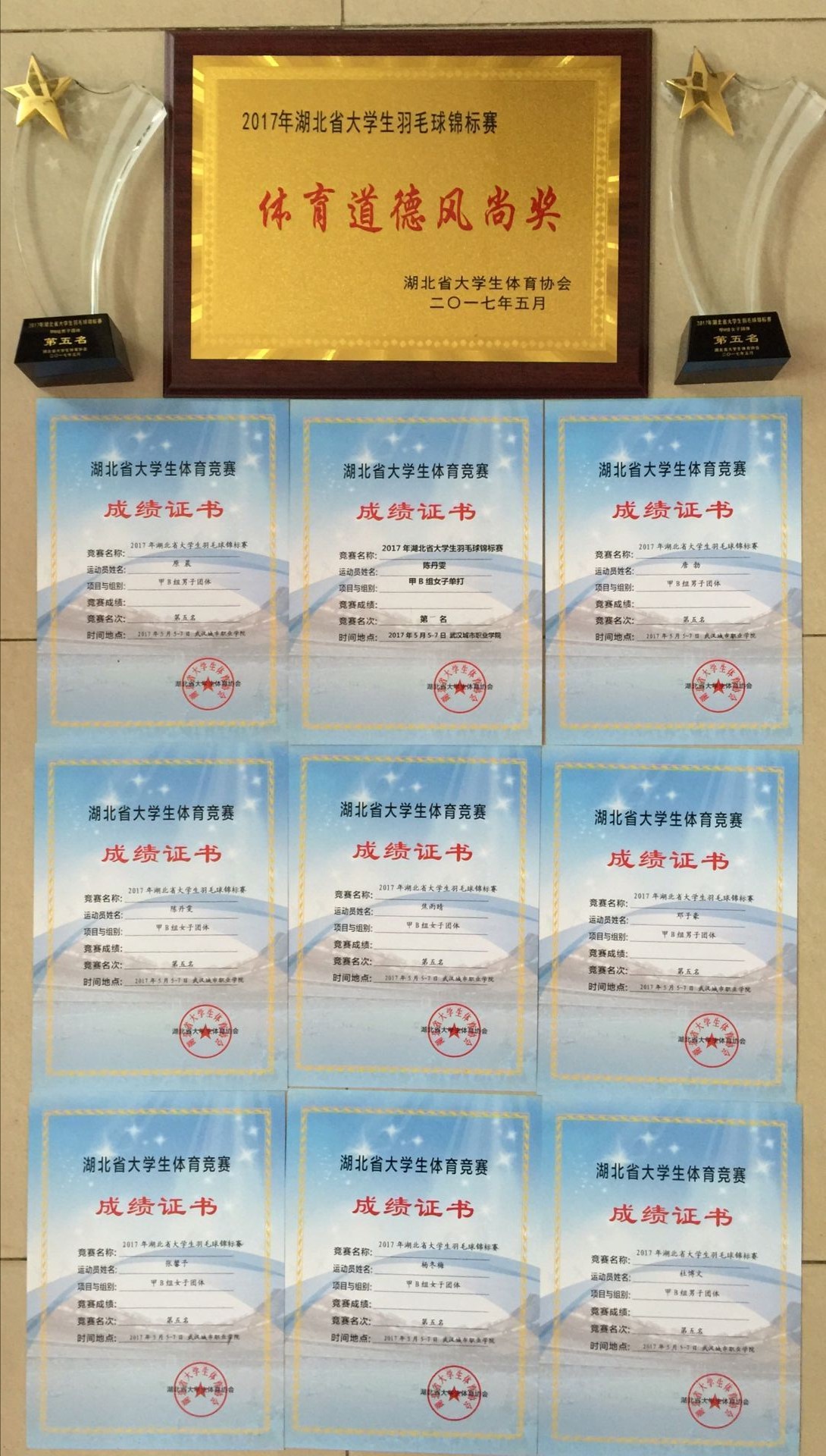 5月5日至7日,2017年湖北省大学生羽毛球锦标赛在武汉城市职业学院圆满落幕。我校羽毛球队在此次比赛中获三项大奖,其中陈丹雯同学斩获女子单打冠军,同时分别获得男子团体、女子团体第五名。
