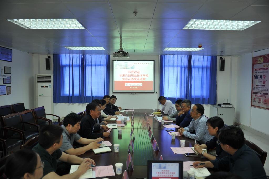 5月4日下午,甘肃交通职业技术学院校长王国强一行6人来我校就新校区建设、中兴通讯项目和专业建设等方面进行调研。校长陈方晔、副校长王孝斌及相关部门负责人参加交流座谈会。