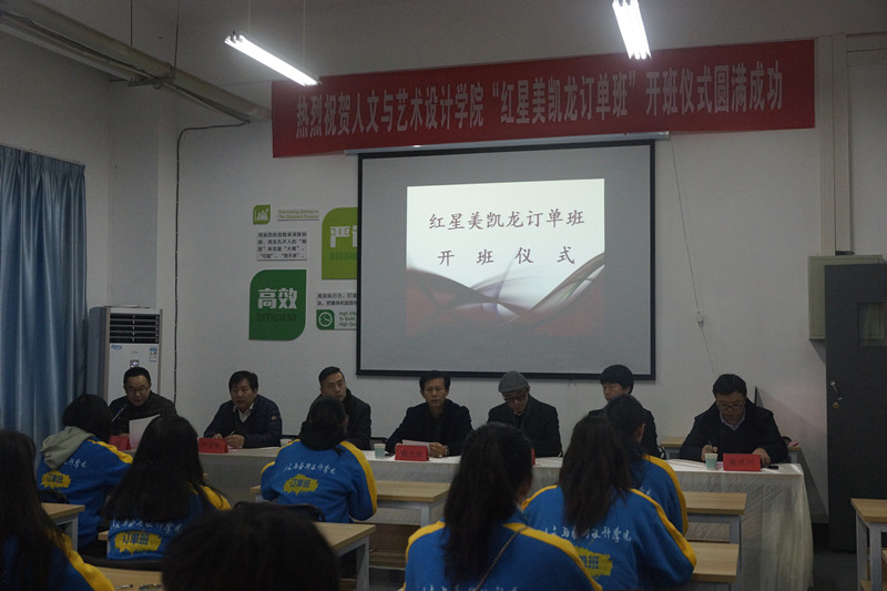 12月27日,“红星美凯龙”订单班在我校西区正式开班,校领导和“红星美凯龙”名星装饰总经理吴民欣共同为“校企合作人才培养基地”揭牌,此举为我校人文与艺术设计学院与装饰行业龙头企业“红星美凯龙”达成校企合作协议后第一次组建订单班,标志着人文与艺术设计学院在创新人才培养模式、拓宽学生就业渠道等方面翻开了新的一页。