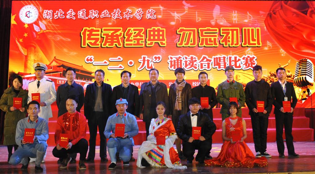 12月8日下午,湖北交职院体育馆灯光璀璨 歌舞飞扬,由学生工作处、公共课部、校团委联合举办的“一二·九”诵读合唱比赛在这里精彩落幕。来自西区、北区、各二级学院12支参赛队的师生同台高歌,共谱红色经典。全体校领导、各处室、二级学院负责人、全体辅导员、班主任老师以及千名学生观看比赛。