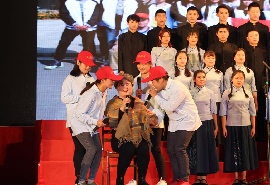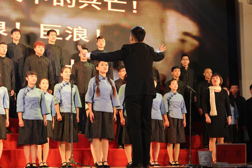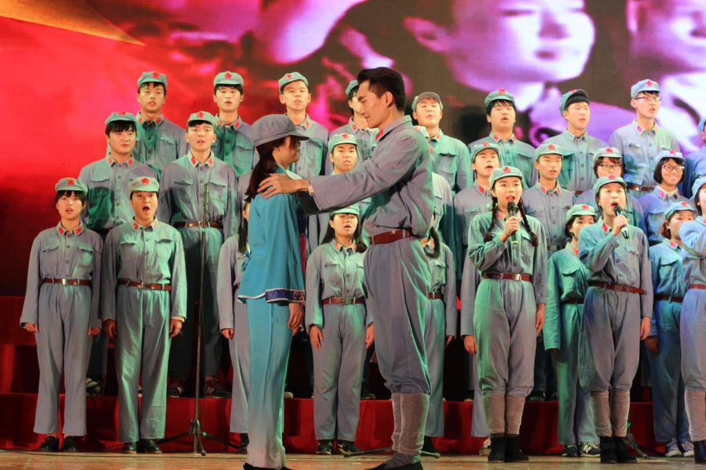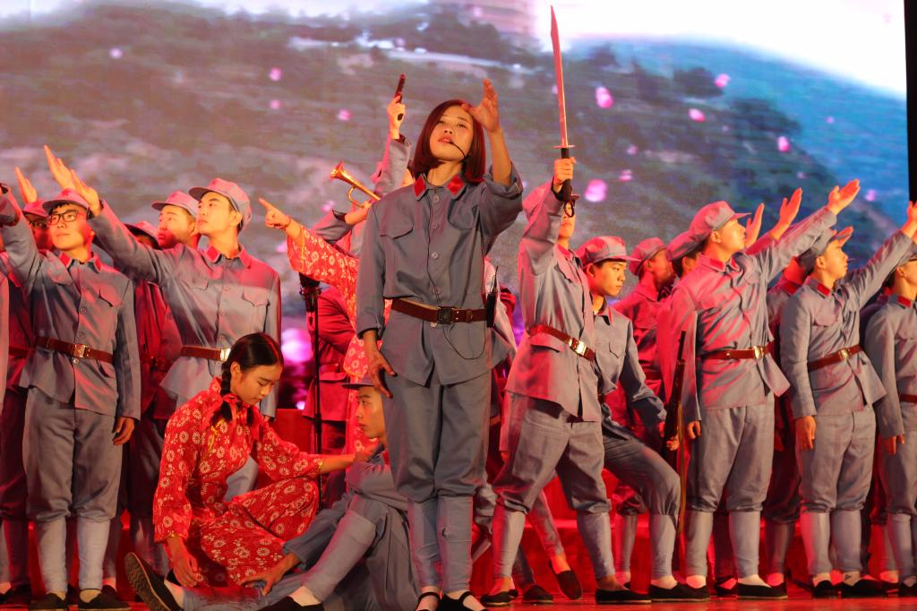 舞台上,各参赛队伍豪情满志,青春勃发,用音乐、舞蹈、戏曲、舞台剧等艺术形式,重温了中华民族开拓进取的夯实足迹,生动讲述了那段波澜壮阔、热血沸腾的红色历史。《山丹丹花开红艳艳》、《爱我中华》、《毕业歌》等耳熟能详的经典曲目唤醒了全校师生对祖国的热爱之情和对革命先烈的崇敬之情。整个诵读合唱过程慷慨激昂,现场高潮跌出,受到了师生的一致“点赞”,广大观众纷纷拿出手机,现场录制小视频,在朋友圈和QQ空间直播比赛盛况。