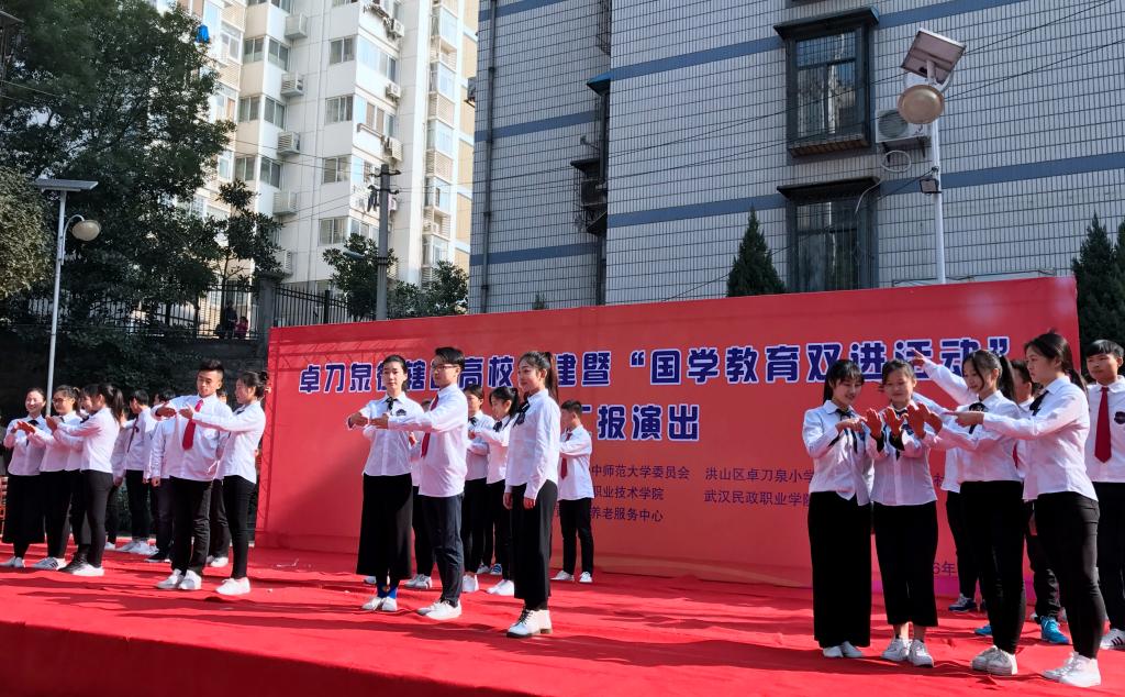12月4日,在第31个“国际志愿者日”到来之际,我校协助金泉社区举办了 “国学教育进社区,进学校”汇报活动。此次活动邀请了洪山区宣传部副部长、区文明办主任刘勇,卓刀泉党委书记丁才华,来自华中师范大学、yl6809永利官网及武汉民政职业学院的志愿者们参加了此次活动。