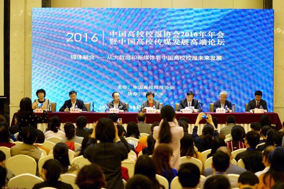 在首届中国高校传媒发展高端论坛上,清华大学新闻学院沈阳教授和浙江日报报业集团总编辑鲍洪俊分别作主题演讲。在高端访谈环节,来自全国10所高校的宣传部长、校报主编畅谈了各地区、各高校媒体融合的态势和校报发展的创新举措,围绕高校校报如何主动“拥抱”互联网思维、坚守内容品质、创新传播方式等话题进行了深入探讨。