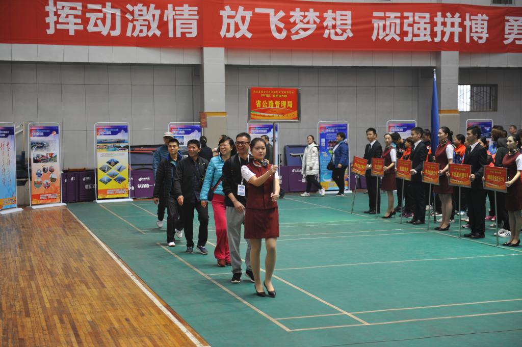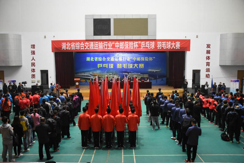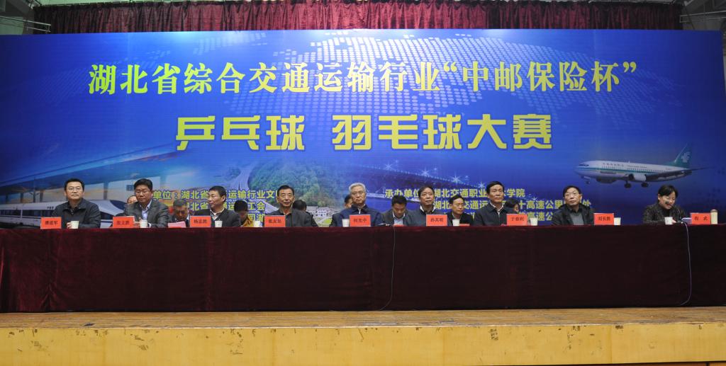 11月15日,湖北省综合交通运输行业“中邮保险杯”乒乓球羽毛球大赛在我校体育馆隆重开幕,省政协经济委员会副主任孙其明,省委省直机关工委副书记于春利,省总工会副巡视员刘长胜、宣教部长王华虎等领导和综合交通运输行业相关单位负责人出席开幕式。副厅长程武主持开幕式。