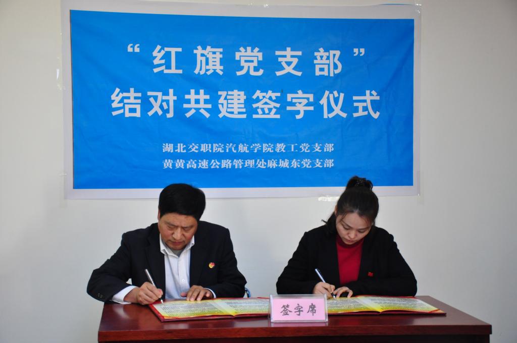 为深入推进红旗党支部创建,促进厅直单位之间党建相互结合,优势互补,激发活力,11月4日,交职院汽航学院教工党支部与黄黄管理处麻城东党支部启动结对共建“红旗党支部”活动,黄黄高速公路管理处的党委书记王同庆和我校党委副书记、副校长李全同志共同见证了支部共建协议的签订。院所双方表示将依托共建活动推进无人机技术在路政执法中的应用。
