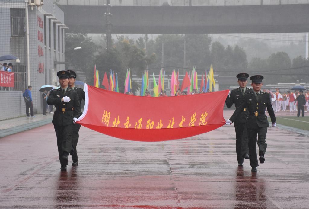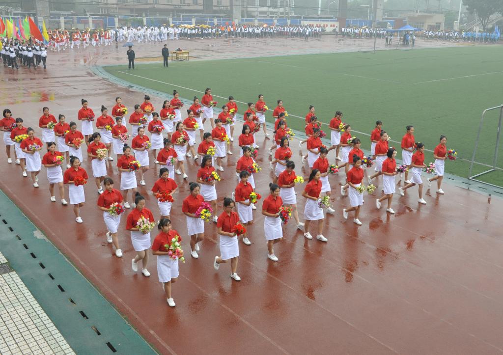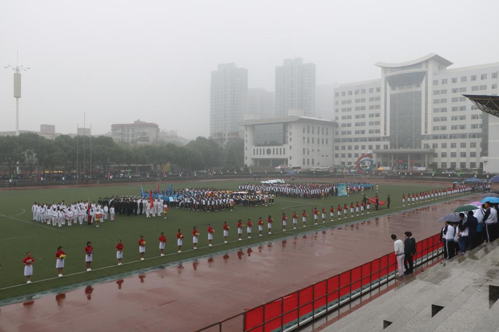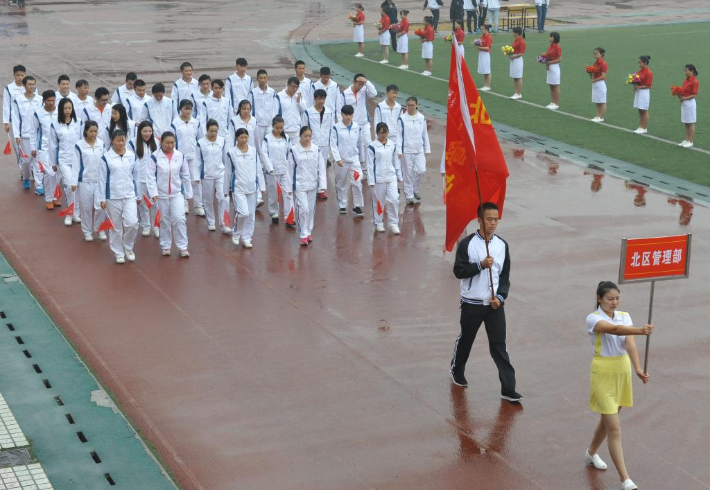 20日上午八点半,伴随着热情激昂的运动员进行曲,护旗手手擎国旗引导鲜花队、彩旗队、管乐队、各二级学院代表队和教工队入场,他们着装整洁,意气风发,迈着铿锵有力的步伐从主席台走过。现场气氛热烈、场面宏伟而壮观。