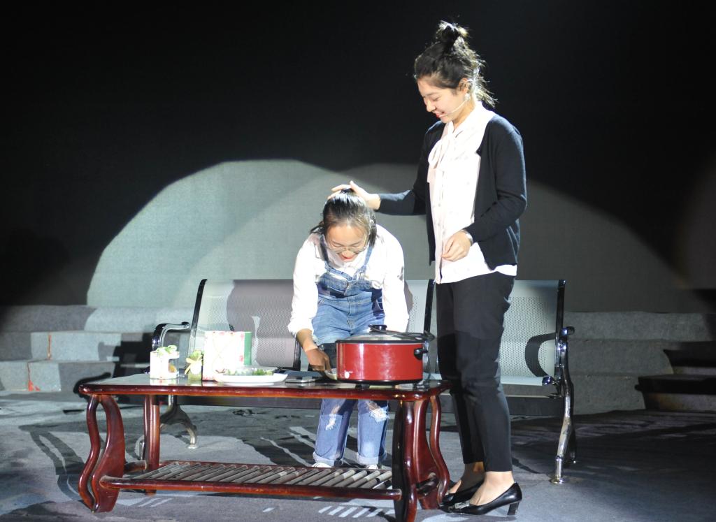 在第三篇“青年梦”中,北区带来的《龙船调》由土家族学生和汉族学生同台表演,营造出诗一般的意境,将恩施峡谷的秀美壮丽和土家儿女的纯朴豪迈娓娓道来;航海学院的情景剧《海丝奇遇记》运用动画制作效果,让人领略了中国古代修建丝绸之路波澜壮阔的故事;校团委学生会演绎的话剧《西游外传》告诫同学们应珍惜美好的大学时光,为明天努力拼搏;吉他社弹奏的歌曲《闪闪红星》、《一起摇摆》劲爆热辣,点燃了全场气氛,将交院学子的爱国情怀、青春活力诠释的淋漓尽致;校武术社表演的《中华传统武术》展示了习武之人外修体魄,内修品德的刚毅柔情;由校团委改编并自导自演的《湖交欢迎你》融合了歌曲演唱、视频解说、内心独白等元素,全方位、多角度展示了交院多姿多彩的魅力和热情好客的性格,触动了在场的每一位交院人。