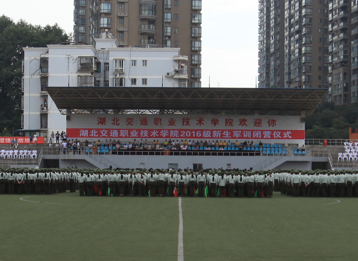 9月23日,学校田径运动场军歌嘹亮,彩旗飞扬,我校2016年新生军训闭营仪式在这里隆重举行。近4000名新生昂首挺胸,激情澎湃,朝气蓬勃,以昂扬的姿态接受部队首长和校领导检阅。