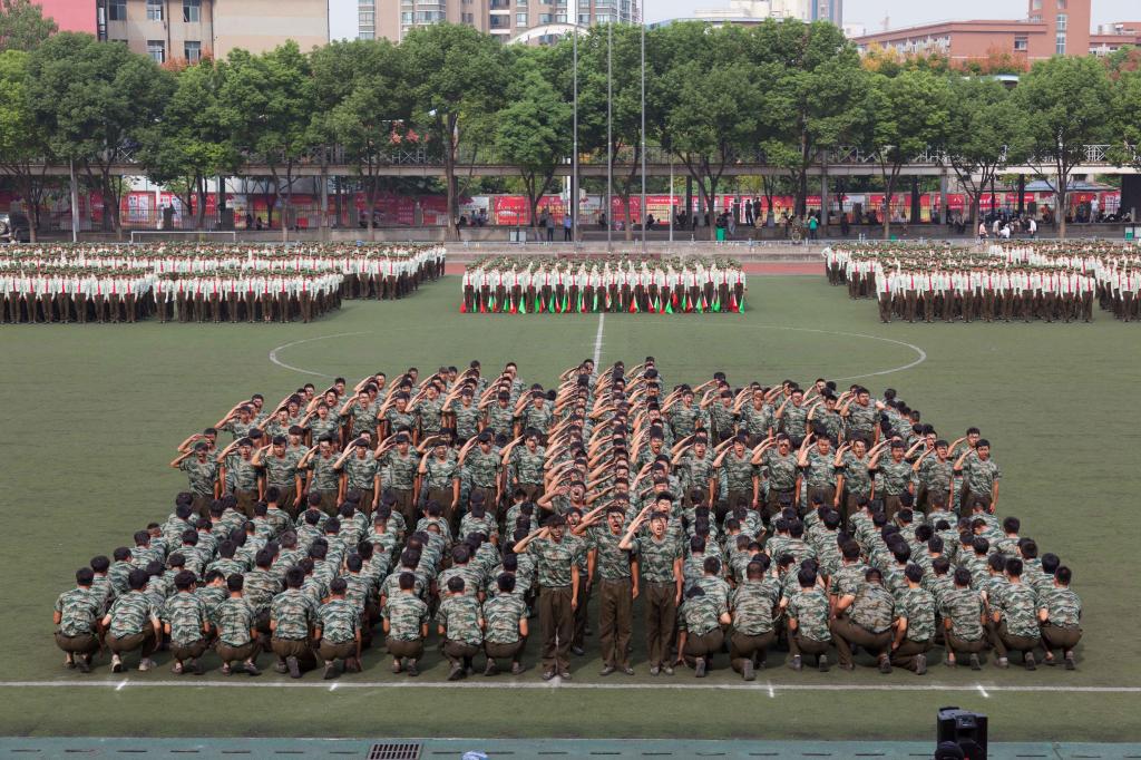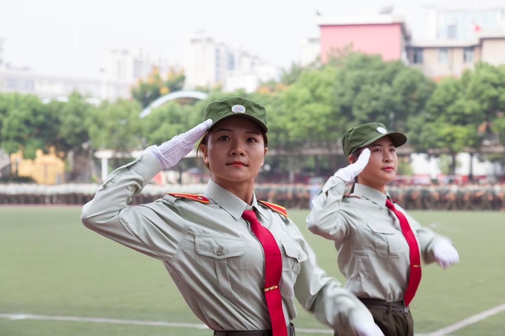 校领导对各位新生表示衷心祝贺,他寄语新生:不忘初心,坚定信念,追求梦想;铭记“重德、励志、笃学、尚能”的校训精神,认真学习科学文化知识,将人生梦想与社会发展、进步结合起来,与脚踏实地、毕业创业结合起来,以只争朝夕的精神谱写精彩的篇章;善于学习,练就本领,锻炼能力,提升素质,勇做走在时代前列的奋进者、开拓者,努力成长为中华民族伟大复兴的栋梁之才;端正思想,自我完善,全面发展,继续发扬军训期间培养的优良品德和作风,积极学习社会主义核心价值观,实现道德素质、人文素质、职业素质、身心素质和创新素质的协调发展。(摄影/军训联合宣传报道组)