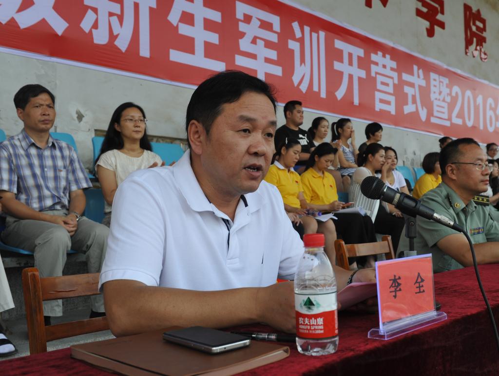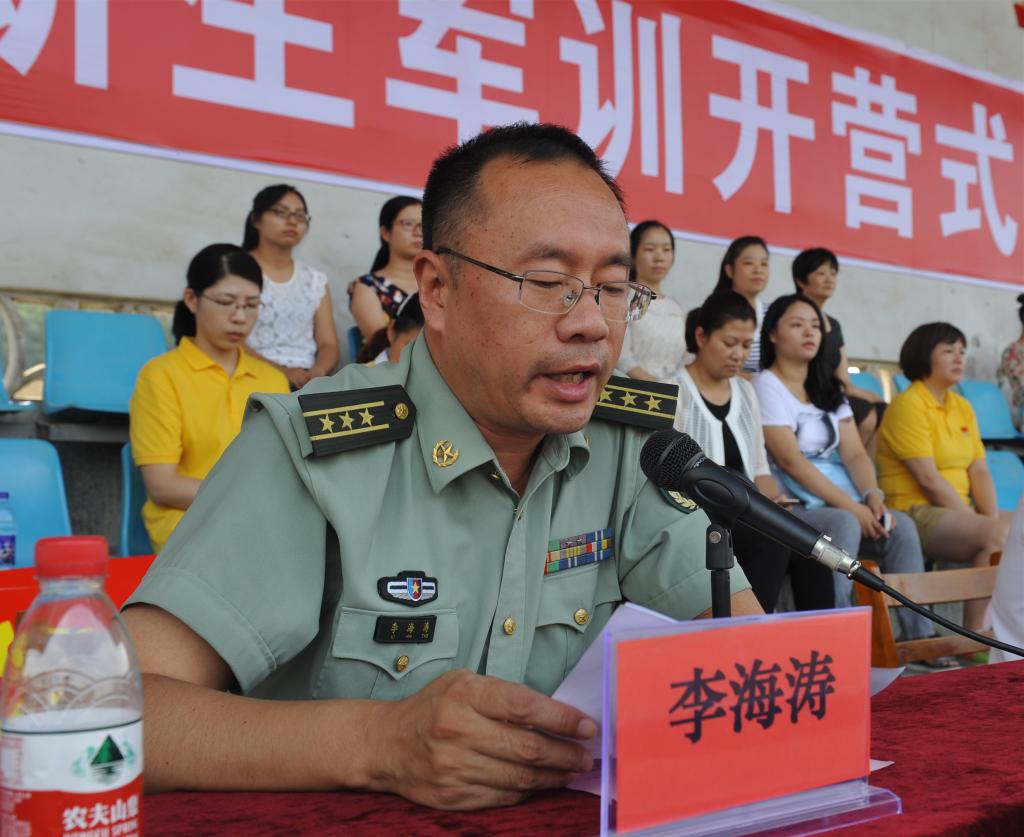 洪山区人民武装部部长李海涛、全体在家校领导、2016级全体军训教官和老师出席新兵入伍欢送会。会议由副校长谢彤主持。