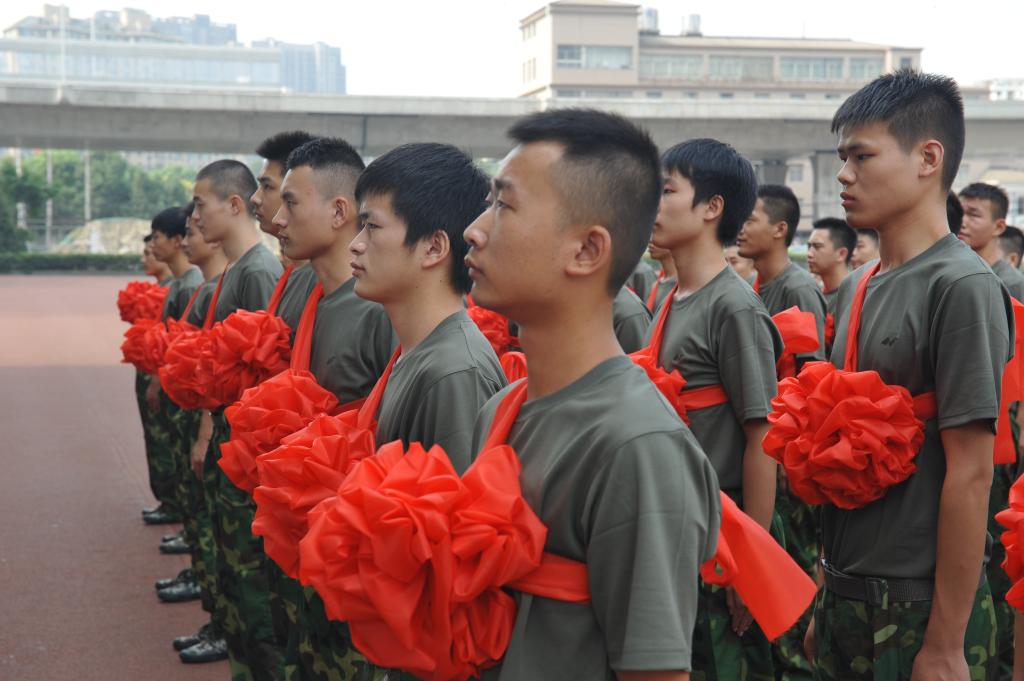 9月8日上午,我校为89名学生举行新兵入伍欢送会,他们身着迷彩服,佩戴大红花,将陆续启程奔赴祖国各地的海陆军营。