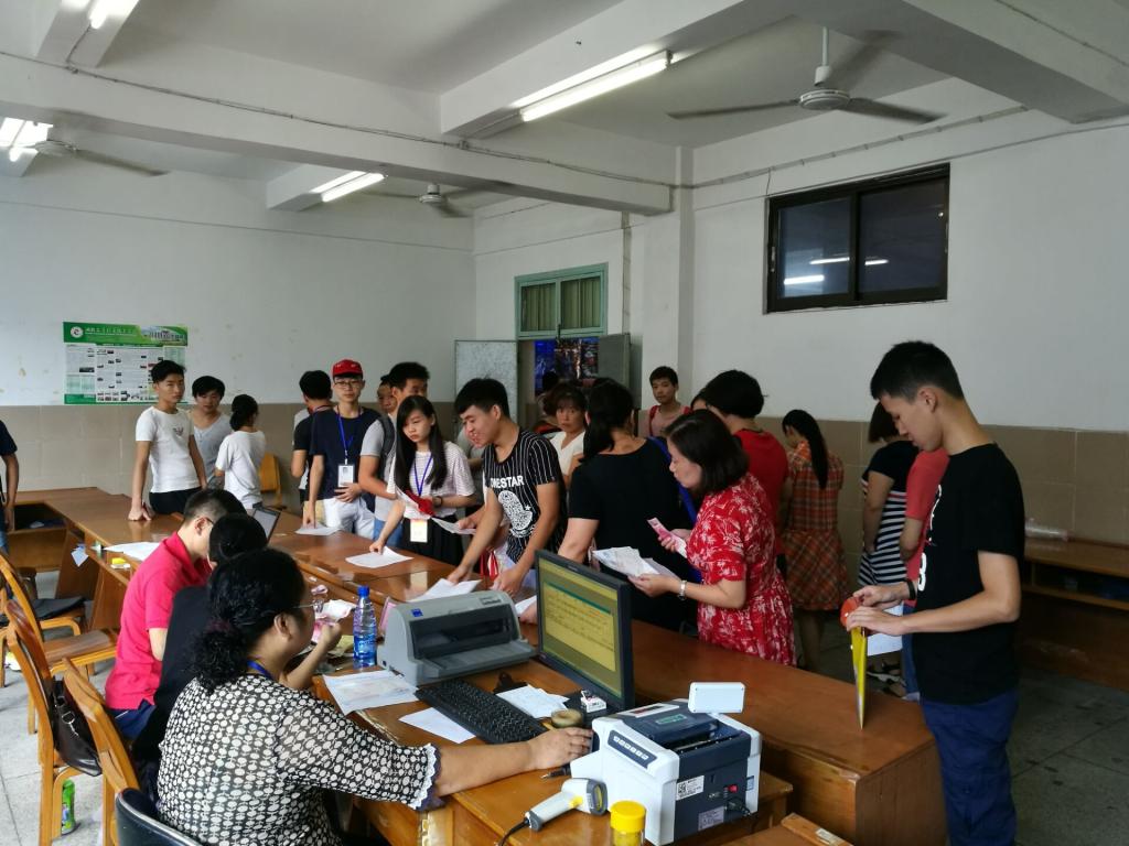 9月6日上午,我校位于黄陂的北校区今天也迎来了新生报名的第一天,但很多学生和家长早已在各个报名点排起了长队,至上午8点半,北校区中职生有180余人报到,高职生有120余名报到。