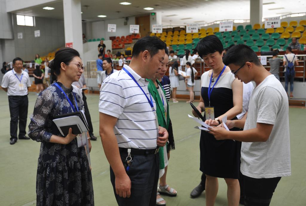 在体育馆缴费处,计算机网络技术专业的马泓城同学的录取通知书被他人误拿,他十分着急。见状后,校领导主动咨询报名工作人员,为其想办法,待马泓城找到录取通知书才离开现场。