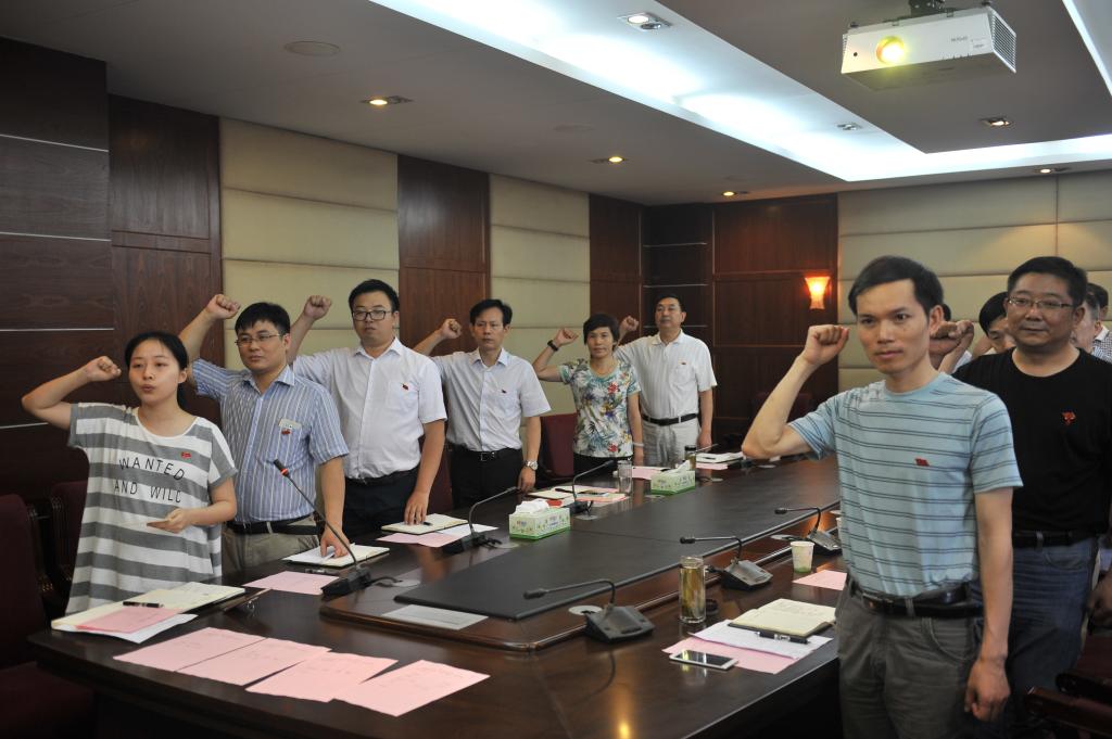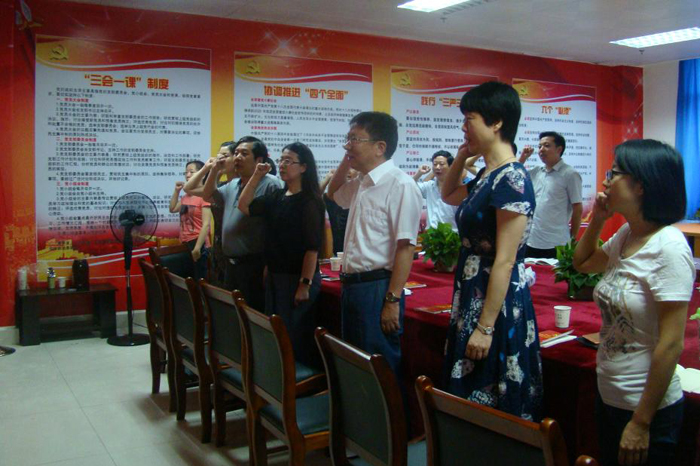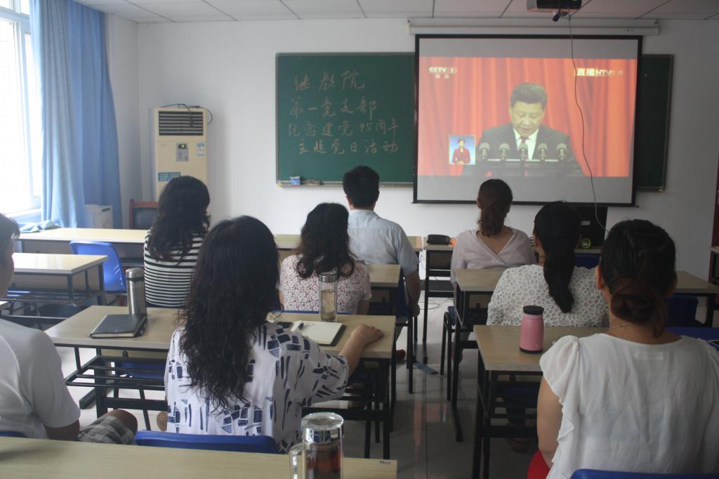 领航新征程,共筑中国梦。7月1日,学校党委组织各基层党支部集中开展“支部主题党日”活动,300余名党员通过齐唱国歌、重温誓词、诵读党章、学习讲话的形式庆祝党的生日。在家校领导以普通党员身份参加了所在支部的党日活动。