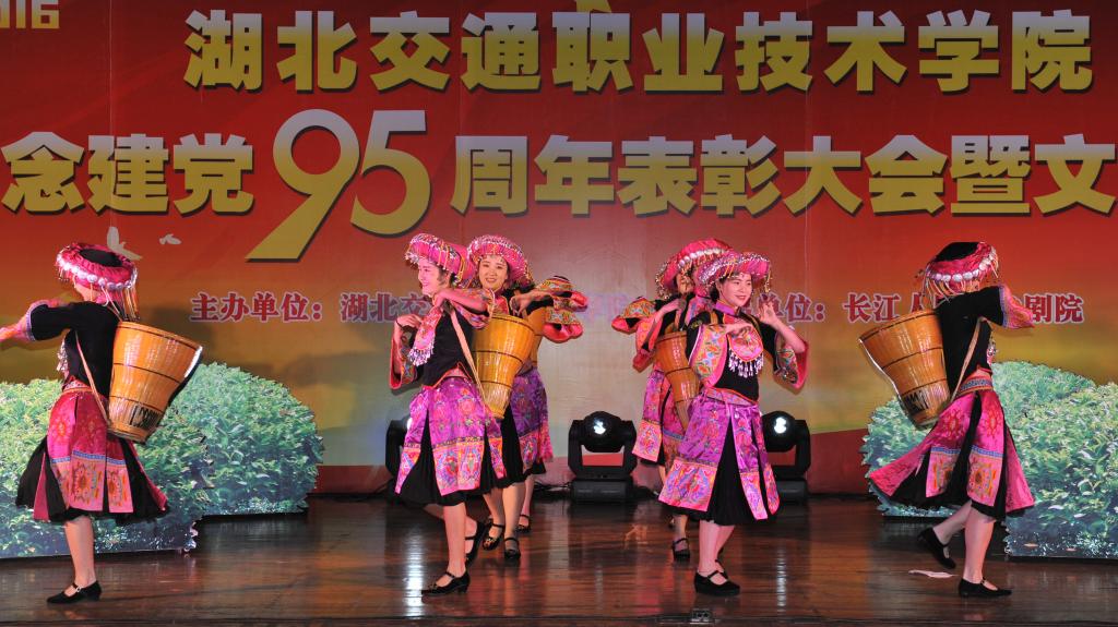表彰大会结束后,全体与会人员共同观看了由长江人民艺术剧院表演的“迎七一、颂党恩”文艺汇演。整场表演涵盖歌舞、诗朗诵、小品、戏曲等多样的艺术形式,热情演绎了《唱支山歌给党听》、《映山红》、《祖国颂》、《红旗飘飘》等红色经典曲目,抒发了对党和祖国衷心的祝福。饱含深情的表演,富有感染力的歌声,讴歌了中国共产党建党95年来的奋斗历程和光辉业绩。整场汇演内容丰富,精彩不断,高潮迭起,演员们以精彩的表演抒发了广大党员群众爱党、爱国的坚定信念,一个多小时的精彩演出,为党的95岁生日送上了节日的礼物,也使观众享受了一份文化大餐。(摄影/张鹏 魏磊磊 王一伦)