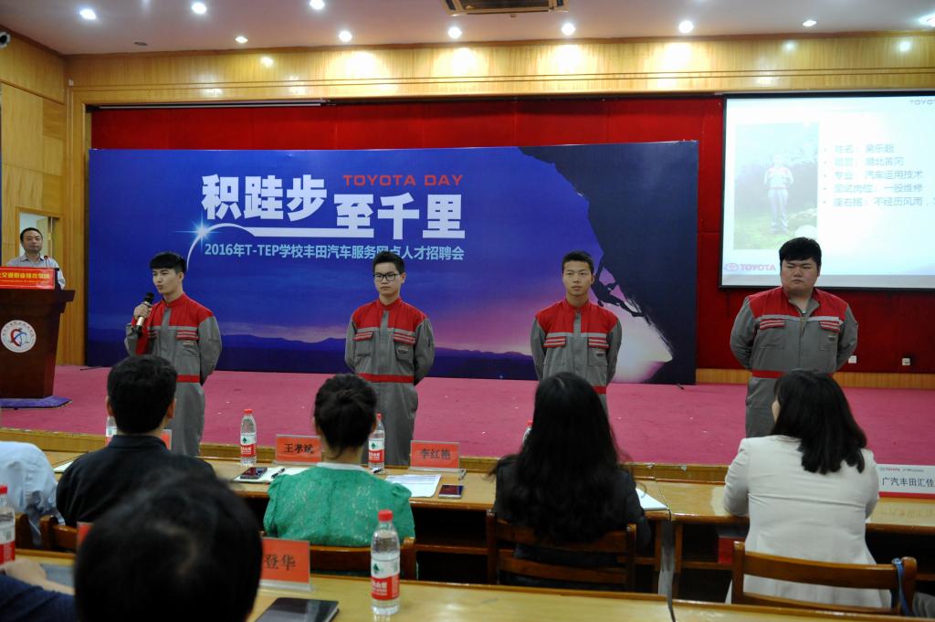 6月2日,“积跬步 至千里—2016年T-TEP学校丰田汽车服务网点人才招聘会”在我校举行,会议由学校T-TEP项目组和丰田T-TEP事务局共同组织,吸引了来自省内的一汽丰田、广汽丰田、雷克萨斯共11家丰田经销店参加,我校有100余名学生与上述企业成功签约。