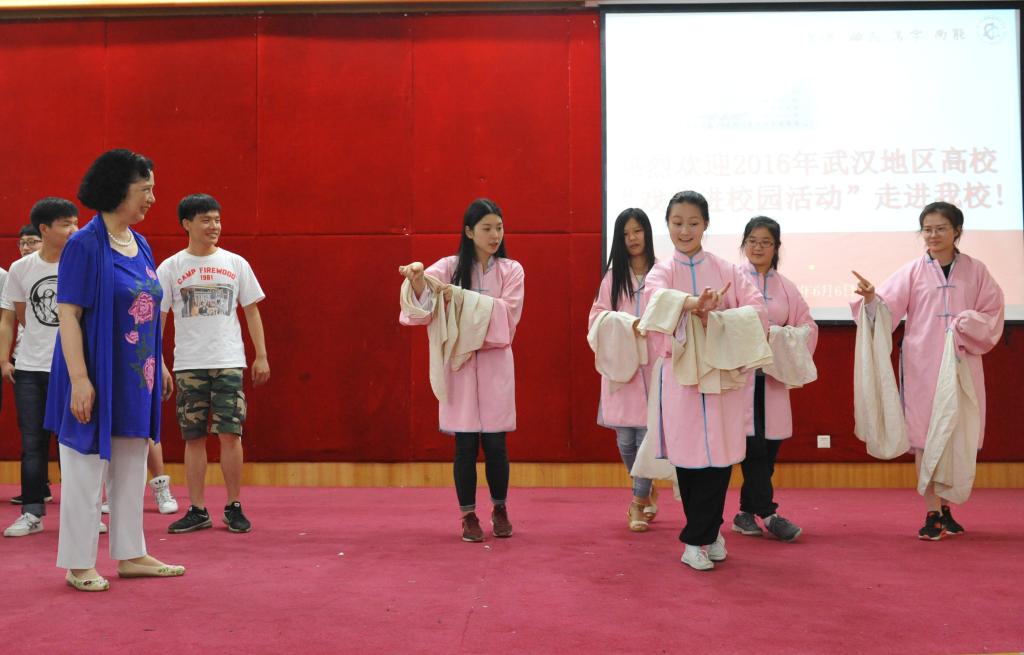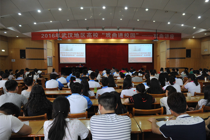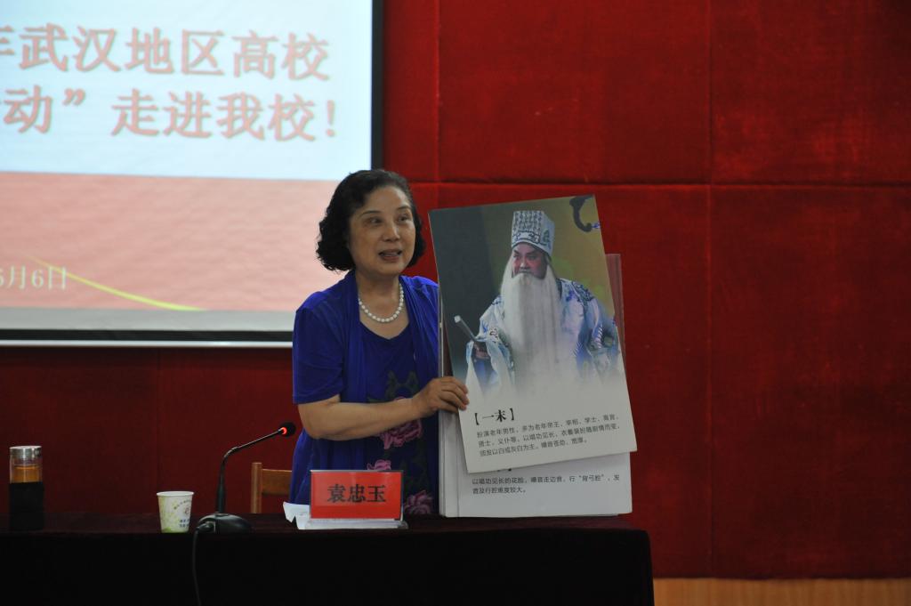 弘扬戏曲文化,彰显汉剧魅力。6月6日下午,武汉地区高校“戏曲进校园活动”走进我校。武汉汉剧院著名表演艺术家、汉剧非物质文化传承人袁忠玉教授来我校作了“汉剧文化”专题讲座。湖北省文联巡视员、副主席朱莎莉,湖北省剧协副秘书长宋辉和我校师生近200人参加了此次活动。