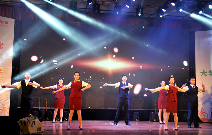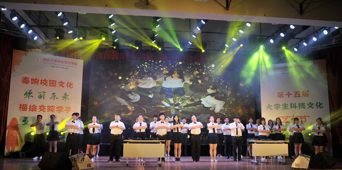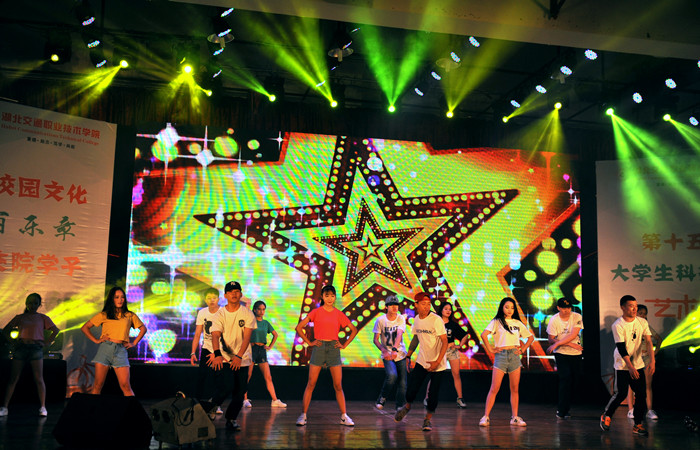 本场文艺汇演融科技、文化、艺术于一体,各学院通过视频短片、文艺表演及科技成果展示等形式,全面回顾了一年来科技文化艺术节所取得的丰硕成果,并首次将视角延伸到校外顶岗实习学生,充分展示了各学院的办学成就和专业特色,展现了交院学子在工作岗位上取得的优异成绩,凸显了学生实践动手能力、创新精神和综合素质的全面提升,营造了高雅的校园文化氛围,整个汇演精彩纷呈、高潮迭起。一曲欢快活泼的《土家风情舞》,拉开了闭幕式的序幕,顿时把大家的视线延伸到浓郁的土家风情中,领略了少数民族的风土人情;由航海学院带来的情景剧《毕业照》,让人感受到了当代海军的英雄气魄和交院士官班学子的军旅人生;部队文工团第一次进校表演,也是本次科文节闭幕式表演的亮点,他们的舞蹈《假如下一秒就战斗》和《雷霆出击》展现了当代军人的热血担当和崭新风采;街舞社带来的《The monster》街舞表演,热辣、青春、亮丽,炫酷的街舞,帅气的动作,引得阵阵掌声;人文与艺术设计学院的小品表演《梦想点亮未来》,展现了交院学子在职场的强大竞争力;物流与交通管理学院的《梦想与成长》节目融合了快板、歌舞等喜闻乐见的表演形式,凸显了学生在校企合作模式下的成长与追梦之路;舞蹈社的藏族舞蹈《那曲锅庄》,为大家展现了藏族文化的魅力;由交通信息学院的小品《天网》,全程笑点不断,诙谐幽默,兼具教育意义,运用大屏幕展示了现代交通信息系统为人们生活带来的变化;公路与轨道学院的舞蹈《刚毅之光》展示了一幅交院学子在工地扎实苦干,一代路桥人的成长蜕变;北区的《青春纪念册》记录了交院学子三年学生生涯的点点滴滴,祝愿毕业生一路走好;汽车与航空学院的小品《再见》,由五个兄弟的应聘经历展现了学院各专业的特色,无人机和机器人的演示让人目不暇接……整场晚会在一曲大合唱《同桌的你》中落下帷幕。闭幕式持续两个多小时,舞台灯火璀璨,节目精彩纷呈,现场高潮迭起,受到了师生的一致“点赞”。