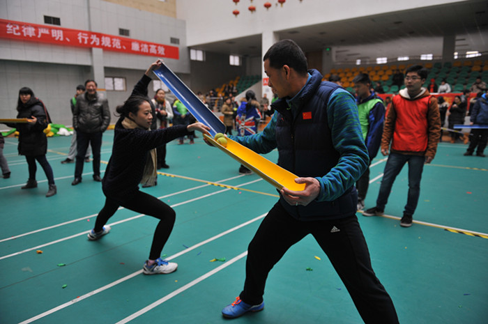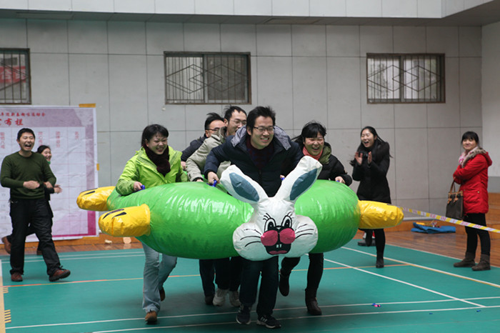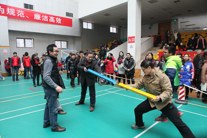 1月21日下午,我校举办2016年迎新春趣味运动会,7个工会代表队的300余名教职员工代表参加了比赛。