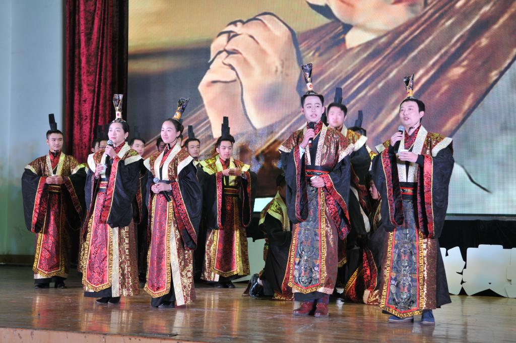 “雅言传承文明,经典浸润人生”。12月3日,由校学生工作处、公共课部、校团委联合主办的2015中华经典千人诵读大赛决赛在体育馆隆重举行。全体在家校领导,各处室、各二级学院负责人以及全校1000余名师生到场观看了比赛。11支参赛队伍精心准备,青春勃发,为千名观众演绎了一出满怀激情与梦想的经典诵读盛会。