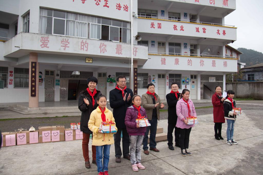 2015年12月1日,副校长谢彤带领我校“刚毅志愿者服务队”联合鄂西高速管理处“爱心义务支教队”一行来到恩施市龙凤镇二坡村鄂西高速希望小学开展爱心支教活动,他们不仅给孩子们精心准备了书本和礼物,还为孩子们带去了丰富多彩的“爱心课堂”。