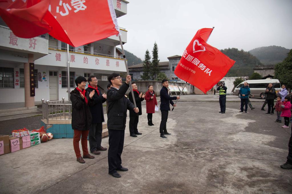 上午9时,双方领导与我校师生在志愿者的引领下观看了鄂西高速管理处“志愿服务宣传展”,并观摩了由我校志愿者精心策划组织的音乐课《感恩的心》。在随后举行的捐赠仪式上,领导们佩戴上红领巾,将爱心图书和学习用品捐赠给希望小学的孩子们。我校副校长谢彤和鄂西高速管理处处长周大华为“刚毅志愿服务队”和“爱心义务支教队”授旗。