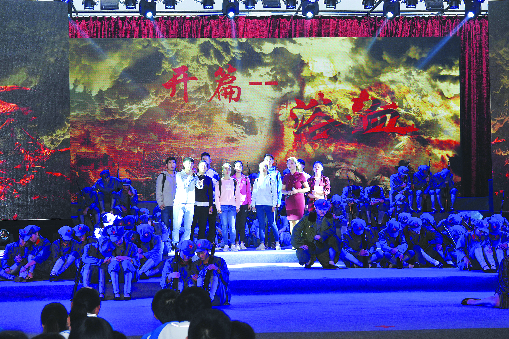 【北区指导老师 杨威】节目里有一个情景是有一名受伤战士,演完我才知道那个演员学生参过军,在炮兵班时被炮弹炸伤了左脚,我们设计的情节也正好是左腿受伤,也算是“本色出演了”,同学们很佩服他的敬业。表演前,学生说衣服破旧,我告诉他们红军当年就是穿这样的衣服打鬼子,战争时代生活艰苦,红军依旧坚持不懈地为我们争取和平生活。我告诉我的学生,要珍惜当下,把握未来,在人生道路上走出每一个精彩瞬间,不留遗憾。
