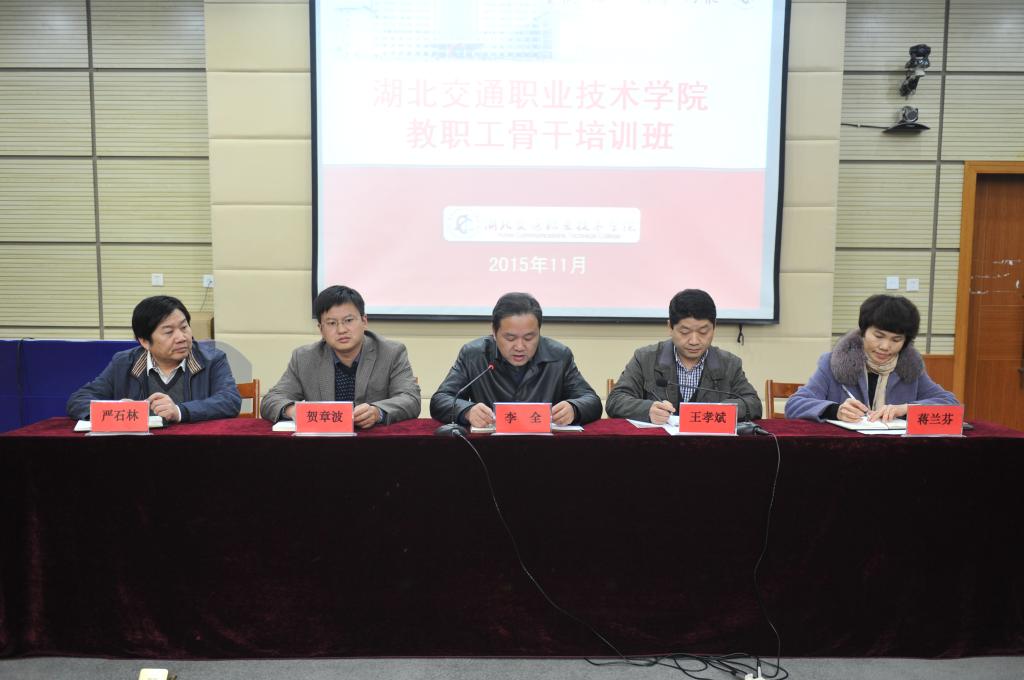 11月12日,我校教职工骨干培训班开班仪式在A0314教室举行,近80名获得“三育人”表彰的优秀教职工和先进集体代表参加了学习。学校党委副书记、副校长李全出席开班仪式并讲话,培训班特邀湖北经济学院法学院副院长潘德勇作“‘四个全面’战略布局解读”专题辅导讲座。会议由校领导王孝斌主持。