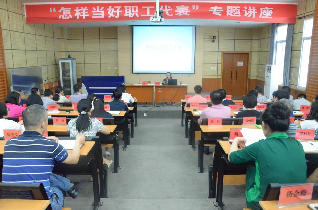 6月18日下午,校工会在314教室举办了“怎样当好职工代表”专题讲座,校长陈方晔、工会主席陈方先及近70名职工代表参加了培训。