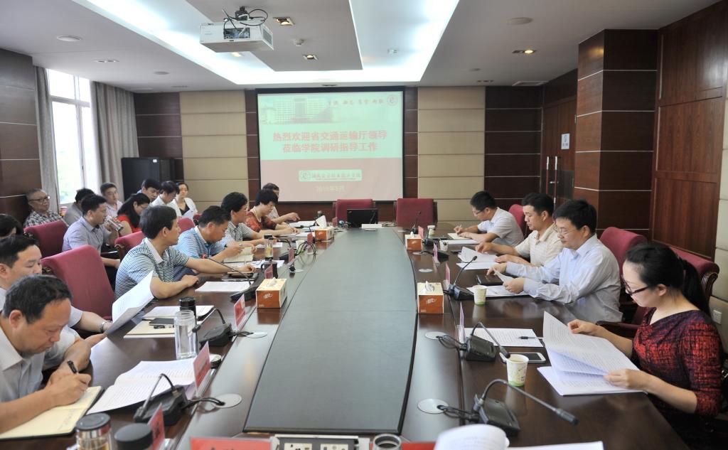 在听取了学校工作汇报后,石先平副厅长对学校近年来取得的办学成果给予了充分肯定,并就学校教育教学和学生管理工作给予了重要指导。一是要坚持正确的办学方向、先进的办学理念和科学的办学思路,正确处理好教与学的关系,努力培养适应时代变化和社会的需求的高素质人才;二是要关注、关心学生的思想动态,引导学生树立正确的世界观、人生观和价值观,促进学生健康成长成才;三是要切实抓好学生的教育管理工作,确保校园和谐稳定。要按照尤厅长提出的争创“三个一流”的目标,抢抓机遇,克难攻坚,不断提高办学水平,更好为交通运输发展提供坚强的人才保障和智力支持。