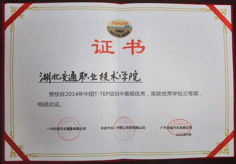 我校在大会上获得2014年度中国T-TEP项目优秀学校表彰,再获中国T-TEP学校优秀学校三等奖,这也是我校连续第九年获得丰田大奖。此外,我校还作为完成单位之一,荣获2014年国家教学成果二等奖(借鉴丰田技术人才培养经验·改革职业院校汽修人才培养模式的实践)。期间,我校分别参加了LEXUS雷克萨斯中国重点合作院校沟通交流会议,一汽丰田委托培训重点合作院校会议等,并与丰田三家公司、其他参会的T-TEP学校的领导和老师进行了深入交流。