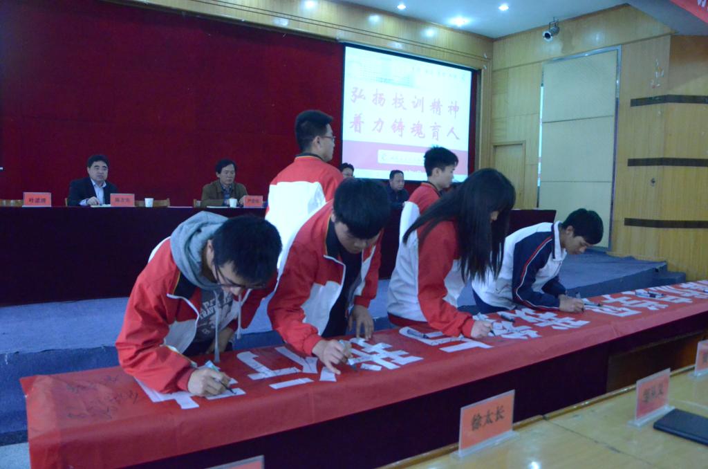 最后,校领导宣布学校2015“学风建设年”正式启动,并带头在“创建优良学风 我参与我行动”倡议横幅上郑重签名。与会其他校领导、师生员工代表也纷纷签字为学风建设年活动助力。