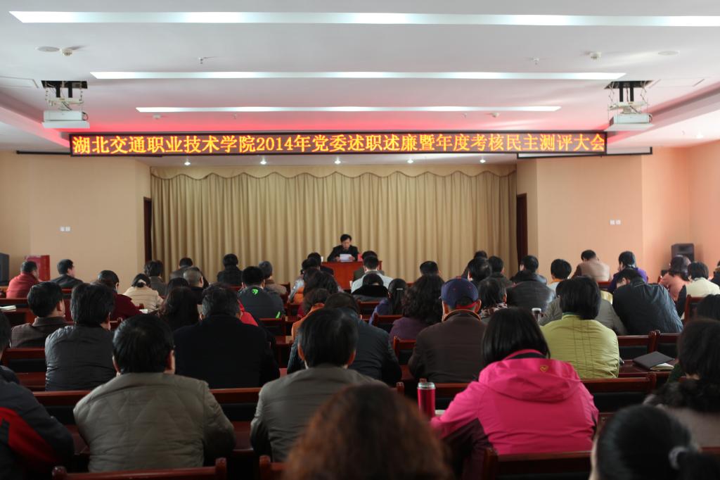 3月12日,学院2014年党委述职述廉暨年度考核民主测评大会在培训楼三楼多功能厅召开。全体院领导、副科级以上干部和教职工代表参加大会。