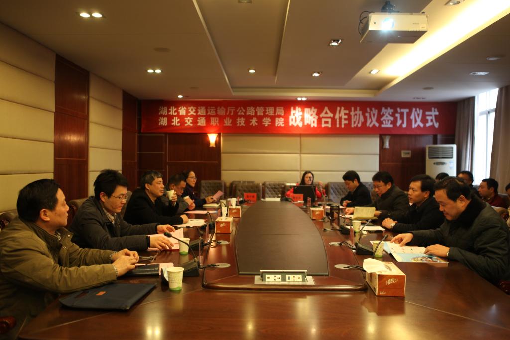 3月6日下午,我院与省交通运输厅公路管理局举行了战略合作协议签订仪式。省公路管理局局长、党委书记熊友山,副局长、党委副书记洪文革等5人出席仪式,学院领导陈方晔、李全、王孝斌及相关部门负责人参加会议。
