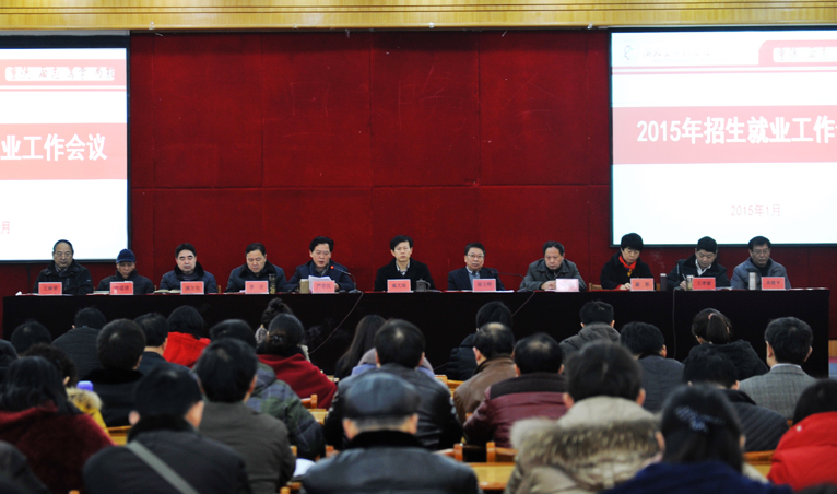 凝心聚力谋良策,众志成城建新功。1月21日,学院隆重召开2015年招生就业工作会,学习传达教育部关于做好2015年全国普通高校毕业生就业创业工作有关精神,全面总结学院2014年招生就业工作,表彰先进、分析形势,研究部署2015年招生就业工作。全体在家院领导、副科级以上干部及全体辅导员参加了会议。
