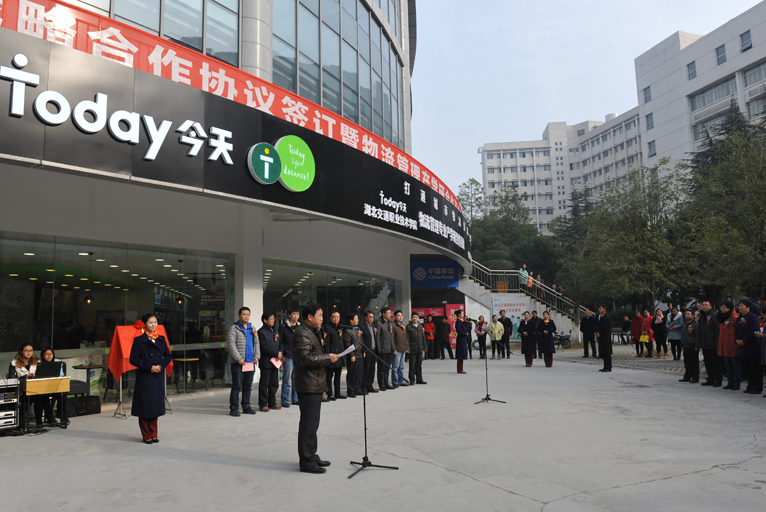 2015年1月9日,yl6809永利官网与TODAY(今天)集团联合创建的物流管理产学研合作基地正式挂牌成立,这是我院紧盯产业调整方向、加深校企合作,贯彻落实国务院《关于加快发展现代职业教育的决定》的创新之举,亦是校企合作育人模式的新型探索。湖北省物流发展局副局长邵迈、湖北省高等教育学会物流管理专业委员会秘书长李方峻、东翼今天集团董事长宋迎春、北京小麦公社CEO刘泽轩、全体在家院领导及相关部门负责人出席成立仪式。